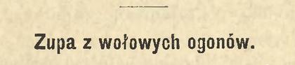 Zupę tę podaje się do wykwintnych obiadów. Dwa ogony wołowe oczyścić, sparzyć i nastawić na rosół dodając dużo włoszczyzny, korzeni, odrobinę kwiatu muszkatułowego [tak wtedy pisano!] i