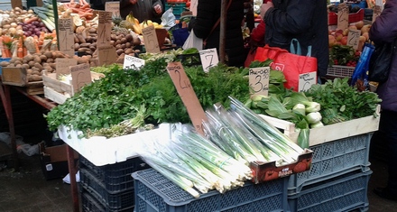Wreszcie znalazłam się na bazarze pod Halą Mirowską. Już lekko wiosennym. Mój wzrok przyciągała zielenina. Na przykład świeży szpinak, powiązany w zgrabne wiązki. Musiałam go kupić. Pewnie, że szklarniowy, ale dobrze że jest!