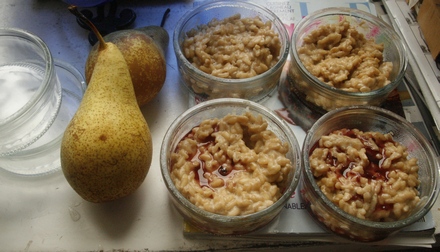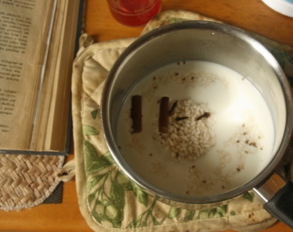 Jeżeli zaś nieco ryżu nam zostało, a mamy ochotę połasuchować, możemy przygotować ryżowy deser. Przypomina dzieciństwo, jako że ryż łączy się z mlekiem, a na końcu polewa gęstym sokiem owocowym. Ciekawe: czy taki ryż dałyby radę ugotować moje wnuki? No i czy by im smakował podany z sokiem z żurawin. Żurawiny jeszcze były do kupienia na bazarze! Nie mogłam się im oprzeć, mimo dość już wysokiej ceny. W domu przyrządziłam z nich sok w sokowniku (na parze). Jest bardzo zdrowy i przyda się wszystkim leczącym wiosenne przeziębienia. A zdrowym, by zdrowie zachowali.