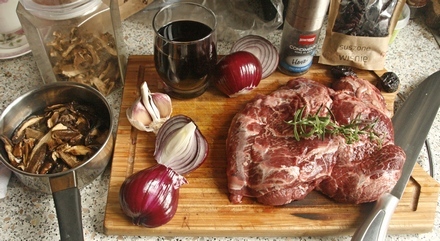 Policzki wołowe w sosie grzybowo-owocowym po mojemu