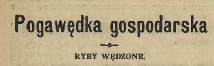 O rybach! W same zapusty? – Tak o rybach, jako najbardziej postnem daniu, gdyż następna pogawędka zjawi się dopiero w dni parę po Popielcu. Ryby wędzone równie łatwe do podania, jak wędliny, których używamy tak dużo, są u nas niedoceniane i nie wchodzą w codzienny jadłospis poza dniami postnemi. A jednak dzięki temu, że przy ich soleniu nie używa się ani saletry, ni ostrych korzeni, są one bezwzględnie zdrowsze od rozmaitych przerobów z wieprzowiny.