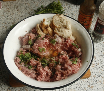 Mięso starannie wyrobić z odciśniętą bułką, jajkami, posiekanymi dość drobno cebulką i natką. Doprawić do smaku pieprzem, sosem Worcestershire, a solą na końcu (aby nie były zbyt słone).