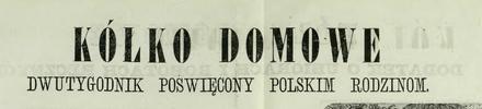 Że więc Kółko Domowe niewchodziło nikomu w drogę, patrzano na nie z lekceważeniem, jako na redagowane przez kobiety, nie frasując się co w sobie zawiera. Zdarzało mi się tedy dowiedzieć się z gazet, że to jest czasopismo dla dzieci – że przeznaczone dla dorastających lub niedorosłych panienek, tymczasem świadczę się wami czytelnicy, że w niem były artykuły mogące obchodzić cały wykształcony ogół.