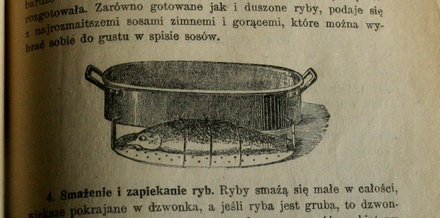 Kto nie miał takiego sprzętu, gotował rybę owiniętą dla zabezpieczenia w serwetę. Przyznam, że nigdy nie korzystałam z tego sposobu. Rybę w całości gotowałam w dużym garnku zwiniętą. A jak gotować, aby łosoś był soczysty i smaczny? Można skorzystać z porad zawartych w „Tygodniku Mód i Powieści” z roku 1894.