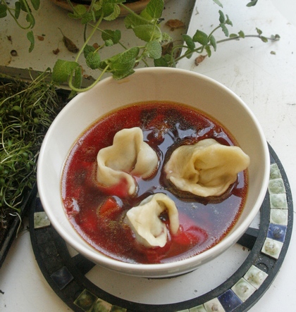 A ja do botwinki, jak na zdjęciu widać, ulepiłam uszka.