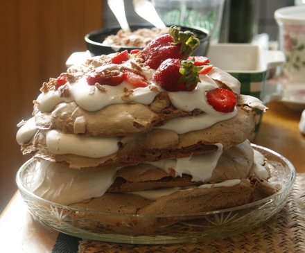 Tort bezowy kakaowy z truskawkami po mojemu