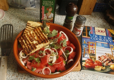 Sałatka z arbuza i grillowanego sera halloumi po mojemu