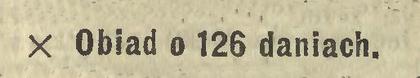 W roku 1902 „Kurier Warszawski” zamieścił ciekawostkową notkę z zagranicy. A nawet z wyższych zagranicznych sfer. Nie wiem, co nabroił wspomniany chiński dygnitarz w roku 1900. Ale bankiet na zatuszowanie jakiegoś faux pas może zostać w pamięci! Niestety, nie podano ani nazwisk gości, ani menu. Czyli tych 126 dań. Ciekawe, czy był ktoś, kto wszystkich choć spróbował?