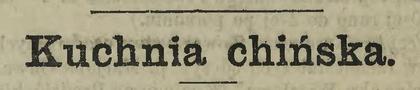 Zwyczaje i obyczaje chińczyków [narodowości pisano małą literą, nie oznaczało to lekceważenia], ich charakter i ustrój polityczny państwa, mniej więcej dokładnie są nam znane; lecz nikt dotąd nie ośmielił się chwalić kuchni synów Państwa niebieskiego, które dla nas, barbarzyńców,! streszcza się w obrzydliwych sosach z oleju rycinowego lub niesmacznych rosołach ze ślimaków morskich i gniazd jaskółczych, poprzedzających pieczone szczenięta.