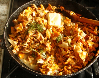 Ja zwykle kurek nie obgotowuję. Dobrze opłukane, pokrojone na cząstki (te większe), dorzucam do cebulki, obsmażam, aż wyjdzie z nich woda, a potem duszę do miękkości. Podsmażam na oleju, a pod koniec dodaję sól i świeże masło. Grzyby kochają masło i pieprz. Można do nich dodawać także czosnek i natkę pietruszki lub koperek, jak lubimy. A może pasują nam zioła? Też dobrze.