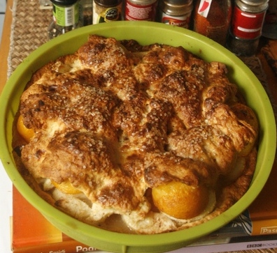 Ciasto jest pyszne na ciepło, ale oczywiście i po przestudzeniu, i następnego dnia. Kto lubi, może do owoców dodać mielone goździki, ale małą ilość, bo są intensywne w smaku. Wierzch zamiast śmietaną można posmarować rozkłóconym jajkiem.