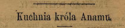 Król Anamu jest wielkim gastronomem! Nawet sam władzca [!] Państwa Niebieskiego [czyli Chin nie posiada takiej liczby kucharzy i kuchcików, jak ten drugorzędny królik azjatycki. Dba on o wykwint przedewszystkiem, ale nie zaniedbuje także oszczędności, co zresztą widać z następującej relacji, poczerpniętej ze źródeł francuzkich.