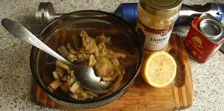 Do pasty dodać sok z połówki cytryny, pastę tahini, wyciśnięty czosnek (można dać go więcej lub mniej), sól i paprykę (może być słodka lub ostra). Wszystko razem zmiksować lub rozetrzeć w moździerzu albo blenderem. Spróbować. Jeżeli potrzeba, doprawić sokiem z cytryny i zaostrzyć papryką.