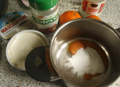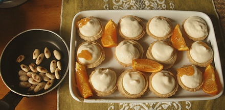 Na początek skromne babeczki z kremem z mascarpone. Moje były kupne, mało ambitne, ale kto chce, niech upiecze własne babeczki z kruchego ciasta. Będą jeszcze lepsze. Ten deser przyrządzimy w mig, naprędce. Byle mieć gotowe babeczki, serek mascarpone w lodówce i mandarynki lub choć jedną pomarańczę w ich miejsce.