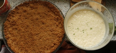 Herbatniki dokładnie pokruszyć i rozetrzeć na małe okruszki (najpierw rękami, potem jakimś tłuczkiem). Masło roztopić. Wmieszać je w okruchy. Ciastem wyłożyć foremkę na tartę. Piec w 180 st. C 10–15 minut. Z limonek, po sparzeniu, zetrzeć skórkę. Przygotować masę limonkową: utrzeć jajka z mlekiem, domieszać sok z owoców. Wymieszać ze startą skórką (trochę zostawić). Masę wylać na spód, piec 30 minut w 180 st. C. Po wyjęciu posypać odłożoną skórką limonki.