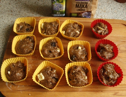 Podczas oczekiwania na tartę, możemy także – nie przerywając rozmowy z gościem – szybko przygotować słodki deser do poobiedniej herbaty. Będą to muffiny, zawsze niekłopotliwe, potrzebujące bowiem tylko wymieszania składników, a nie ich ucierania czy zagniatania. Do tych, które zaproponuję kupmy specjalne produkty uzyskiwane z lnu: lniany olej oraz lnianą mąkę. Nie wiedziałam, że taka istnieje, dopóki nie ujrzałam jej w sklepie na półkach z żywnością ekologiczną. Czasami tam zerkam i niekiedy decyduję, aby coś kupić. Są to zwykle nowinki. Mąka lniana w muffinkach zdała egzamin.