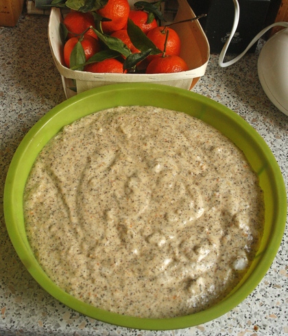 Wymyśliłam ciasto łączące trzy tradycyjne zimowe produkty: mak, migdały i mandarynki. Pomysł poratuje tych, którzy mają za dużo tych ostatnich, a nie lubią, gdy coś w domu więdnie i pleśnieje.