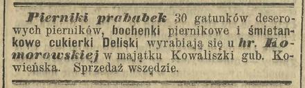 A na deser? Pierniki i pierniczki. Ich nie powinno zabraknąć. W dawnych czasach gotowe też podawano. Dowodem anons z tego samego rocznika „Kuriera”. Proszę zauważyć, że i w nim jest mowa o tradycji. O przodkach. Przy wigilijnym stole zawsze o nich pamiętamy.
