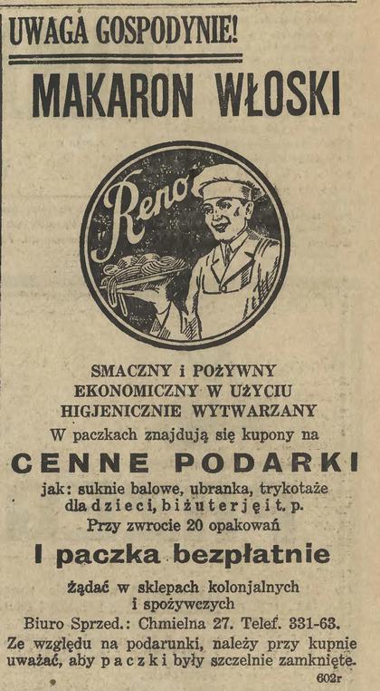 Ilustracją mojego wpisu niech będzie reklama przedwojennego makaronu. Opisywała je Pani Elżbieta. Z jej felietonów wiemy, że znano te prawdziwie włoskie, wyrabiane ze specjalnej mąki. I wiedziano, że należy je gotować al dente. To wcale nie wymysł najnowszych czasów!