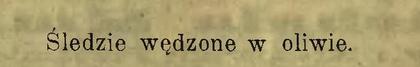 Wędzone śledzie sparzyć ukropem na dwie minuty, nie dłużej, następnie nalać zimną wodą na 6 godzin, obrać ze skórki, wyjąć kość środkową, a same grube długie kawałki od grzbietu ostrożnie obrać i układać w puszki blaszane lub słoiki szklanne wysokie – nalać dobrą nicejską lub prowancką oliwą, zawiązać papierem albuminowym, a będą wyborną zakąską po wódce. Trzymać je można w zimnej śpiżarni kilka miesięcy.