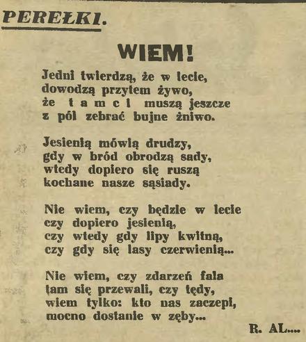Wiele osób poddawało się wakacyjnej beztrosce. Mało kto zaczynał się niepokoić międzynarodową sytuacją, czyli pogróżkami hitlerowskich Niemiec i ich różnymi prowokacjami. Choć niektórzy tę świadomość mieli. Pod koniec czerwca, konkretnie 22 VI, w Ikacu ukazał się wierszyk obrazujący ówczesne nastroje. Tromtadracki jak cała oficjalna państwowa propaganda.