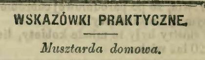 Od lat kusi mnie, aby samodzielnie przyrządzić musztardę, wciąż do tego się nie mogę zebrać. Ale nic straconego. Na razie gromadzę recepty. Dla miłośników samowystarczalności podam kolejną. Zamieścił ją „Kurier Warszawski” w roku 1885.