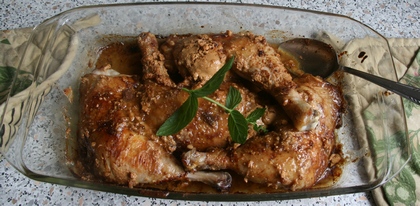 Jak widać, wystarczy upiec udka kurczaka czymś tam przyprawione i obłożone, aby mieć wykwintny obiad. Podajmy do niego ryż lub, zwłaszcza w drugim wypadku, kus-kus. A może i kaszę jaglaną? Oraz koniecznie miskę sałaty. teraz bywa wyjątkowo smaczna. Musi być świeża, chrupka, dlatego doprawiamy ją w ostatniej chwili przed podaniem lub już przy stole.
