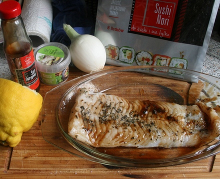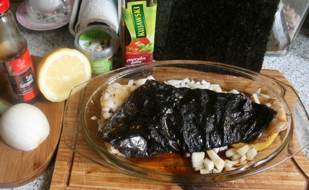 Drugą rybę z dodatkiem będzie dorsz. Dodatek będzie egzotyczny. Ulubiony przez kuchnię japońską. To wodorosty nori. Zdrowe, o bardzo morskim zdecydowanym smaku. Przydadzą go dodatkowo dorszowi.