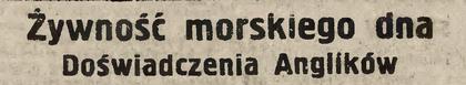 Obecnie dokonywane są doświadczenia, które jeśli się powiodą, zapewnią Anglii samowystarczalność żywnościową. Na dnie morza rosną liczne rośliny, z których część jest jadalna. Prace stacji doświadczalnej w zatoce Kardygańskiej wykazały, że z pośród [tak!] roślin, spotykanych na dnie tej zatoki, aż 50 gatunków, nadaje się do jedzenia, względnie do celów przemysłowych.