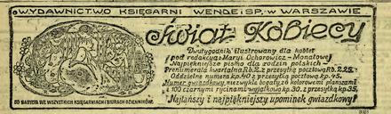 Z tego samego roku pochodzi anons zamieszczony w tygodniku „Bluszcz”:
