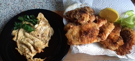 Wyjmować na chłonny papier kuchenny. Pozostałe jajko wymieszane z sosem sojowym na końcu wylać na masło, usmażyć omlecik, podać do ryby.