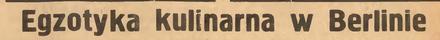 Wraz z napływem tej ludności egzotycznej zaczęły powstawać w różnych punktach miasta restauracje i kawiarnie, które stały się rychło osobliwością Berlina i magnesem przyciągającym tam Berlińczyków, a to dzięki nie tylko otoczeniu, lecz, przedewszystkiem, oryginalnej kuchni, narodowemu menu i potrawom niezwykłym, które przyrządzają na miejscu kucharze, rodowici Turcy, Chińczycy, Ormianie, Hindusi.