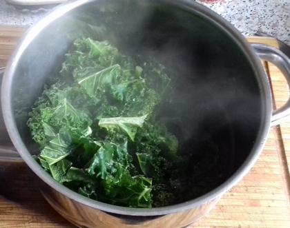 Jarmuż przebrać, obgotować na parze przez 20 minut.