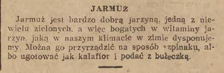 Jeszcze jedna notka o jarmużu, starsza. Pochodzi z roku 1931, a zamieścił ją krakowski „Nowy Dziennik”, żydowska gazeta wydawana po polsku (z ciekawym dodatkiem literackim!).