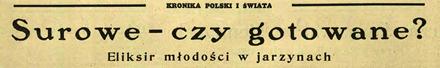Podstawy zdrowego żywienia znano już przed wojną. Dowodem tekst (z niewielkimi skrótami), jaki znalazłam w warszawskim tygodniku o dość pretensjonalnej nazwie „Kronika Polski i Świata” z roku 1938. W tymże roku zresztą powstało to pismo, prezentujące poglądy endeckie na świat. Ukazywało się siłą rzeczy do września roku następnego. Redaktorem pierwszych wydań był Zygmunt Ipohorski, wsławiony rychło spoliczkowaniem Antoniego Słonimskiego za piękny wiersz „Dwie ojczyzny” (proszę poszukać, jakże tragicznie aktualny…), a podczas wojny zastrzelony przez Kedyw AK-woski za kolaborację z Niemcami (był dyrektorem jednego z warszawskich niesławnych okupacyjnych teatrzyków)… Oto komunikat, jaki się był ukazał po tym jego „bohaterskim” i „patriotycznym” czynie w stosunku do Słonimskiego: