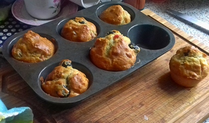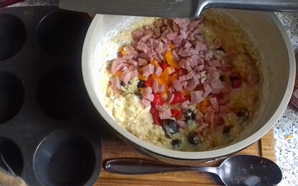 Muffiny z szynką, papryką i oliwkami po mojemu