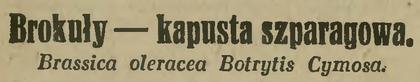 Na zakończenie dowód, że brokuły znano w Polsce, a przynajmniej w Królestwie Polskim, bo tam ukazywało się czasopismo, w którym je opisano, w wieku XIX. Przepis podało warszawskie „Kółko Domowe” w roku 1867. Jest właściwie sposobem na podanie kapusty, ale opatrzono go uwagą: „Można podawać w taki sposób wszystkie gatunki kapusty, oraz i brokuły”. Oczywiście, pisownia też dziewiętnastowieczna, z „e” pochylonym.