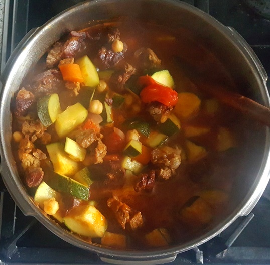 Taka jagnięcina jest potrawą samą w sobie, można ją podać po prostu z pieczywem lub z ziemniakami czy ryżem. Ale my odstawiamy ją w ciepłe miejsce (trzymamy na małym ogniu lub w piekarniku), aby podać z kuskusem.
