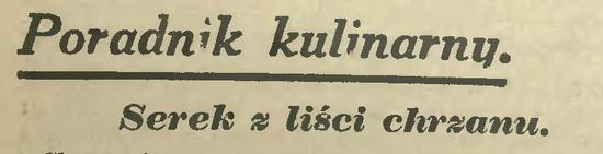 Chrzan jest nierozerwalnie związany z kuchnią polską. Podawano go, zwłaszcza do mięs, surowy, po prostu po utarciu, nieraz w postaci cieniutkich wiórków (np. do befsztyków czy kiełbas). Ale najchętniej sporządzano z nim sosy. Jest ich cała gama. Ciepłych i zimnych. Podawano je i do mięs – w Wielkanoc pieczone prosię czy szynki bez niego nie istniały, a często spożywana na obiad sztuka mięsa ten sos po prostu kochała – i do ryb (klasyczny był szczupak w sosie chrzanowym). Na przykład taki, jaki pokazany był w magazynie „As” w roku 1938.