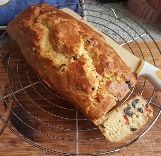 Oczywiście oliwki mogą być zielone, nawet te faszerowane. A papryka może być w różnych kolorach (po pół czerwonej, zielonej i żółtej). Zamiast chlebka w formie keksowej, można upiec w foremkach na babeczki muffiny. Nawet wygodniejsze, bo nie trzeba kroić, tylko od razu podać. Jeszcze ciepłe są pyszne.