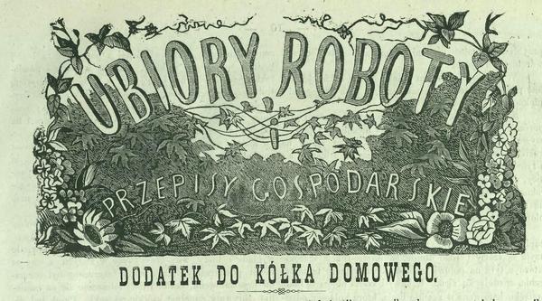 Sięgam jeszcze dalej w przeszłość. Rok 1868 to ostatni rok ukazywania się pisma warszawskiego dla pań o tytule „Kółko Domowe”. Miało spore ambicje literackie, trzymało wysoki poziom, a gdy redaktorek zabrakło, musiało zejść ze sceny. Na swych łamach oprócz publicystyki lekko feministycznej (w duchu czasów) zawierało i liczne porady.