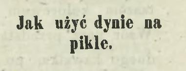 Dojrzałe dynie brać, powykrawać z nich jakie chcąc ładne figurki i w wodzie dobrze osolonéj zagotować, odcedzić potem na przetak, ostudzić, złożyć do słoja i octem choć słabym zalać, ale przegotowanym i ostudzonym, po kilku tygodniach octem już mocnym i przegotowanym z aromatami zalać ostudziwszy.