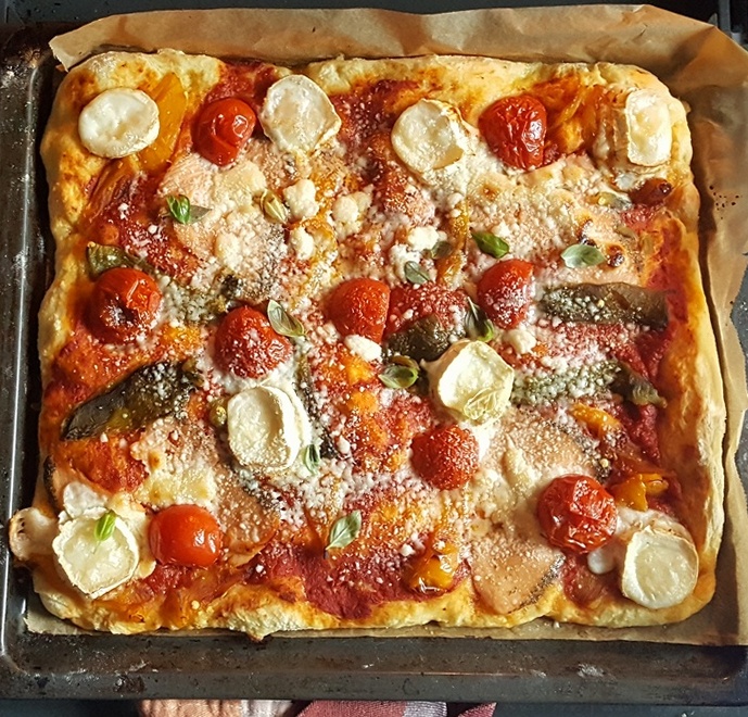 Łososia zastąpi każda inna wędzona ryba, ale także wędlina. Sery mogą być rozmaite. Startym serem warto posypać 5–8 minut przed wyjęciem z piekarnika, podobnie na końcu dodajemy mozzarellę. A może mamy jeszcze oliwki? A zamiast łososia anchois? I więcej kolorowych pomidorków? Proszę bardzo. Z ciasta można też uformować stylowy okrągły placek.