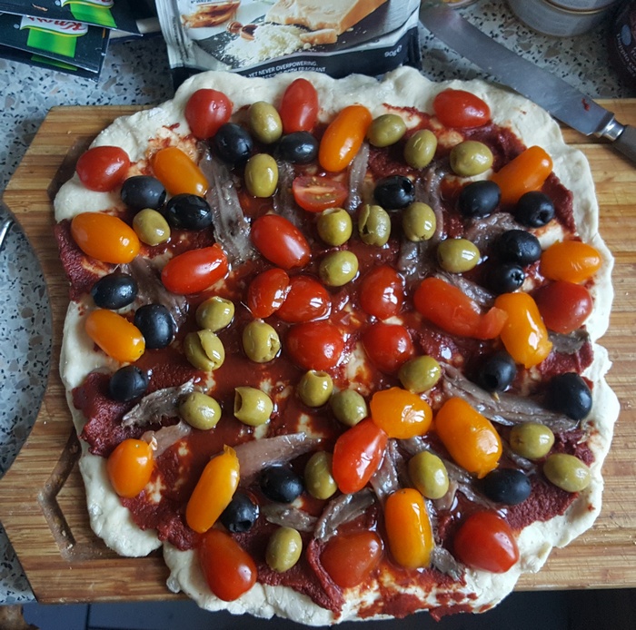 Zdarza się, że zostaną nam plasterki wędzonego łososia. Można je dodać do opisanego makaronu. Ale może wykorzystać je do ambitniejszej domowej pizzy? Ciasto zawsze lepiej przygotować samemu, zwłaszcza obecnie, gdy w sklepach pojawiły się mieszanki dobrej do tego mąki. A dodatki? Jak wyżej, Rozmaite, bez specjalnego kupowania. na co nam pozwoli zawartość lodówki.