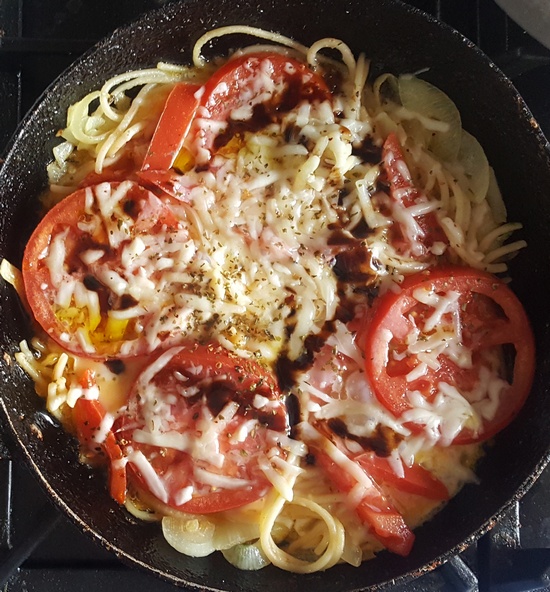 Smaki oliwy i octu balsamicznego (Bożenko, dziękuję za te prezenciki!) oczywiście można zmienić, podobnie bazylię zastąpić innymi ziołami. Do pomidora można dodać paseczki papryki. Czosnku nie dawać lub dać go więcej. Dodać paseczki szynki lub boczku. Albo wędzoną rybę. Do startego sera wkruszyć ser pleśniowy lub kozi. Przy takich odsmażonych resztkach można popuścić cugli wyobraźni. Dlatego też je kocham.