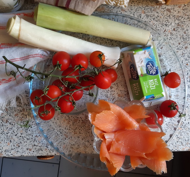 Tarta z porami, kozim serem i wędzonym łososiem po mojemu