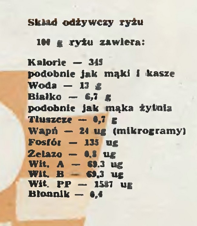 Podano także wartości odżywcze ryżu. Chyba aktualne?