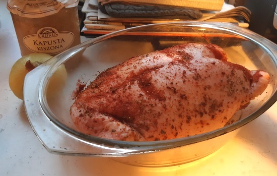 No, czas na moje dania z gęsi. Będą dwa. To drugie można przyrządzić z gęsi świeżej, ale ja wykorzystałam resztki piersi pieczonej. Najpierw jednak nieskomplikowana do przyrządzenia gęsia pierś z piekarnika.