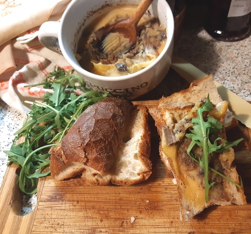 Rillettes jemy z pieczywem. Podane do czerwonego wina jest pyszne! Ważne jeszcze jedno: podajmy do niego coś zielonego. Mnie bardzo smakowała wyrazista w smaku rukola. Gęś jest bogata w smak i lubi dodatki wyraziste. Jej przyrządzenie (i jedzenie!) da nam naprawdę wiele przyjemnej satysfakcji. A wcale nie jest trudne.