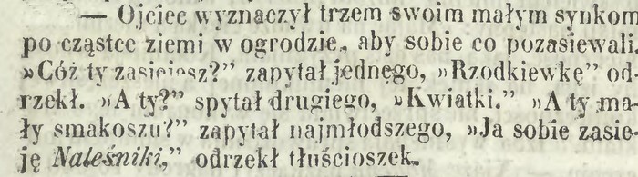 Dowodem anegdotka, którą zamieścił ku zabawieniu czytelników „Kurier Warszawski” w odległym roku 1849.